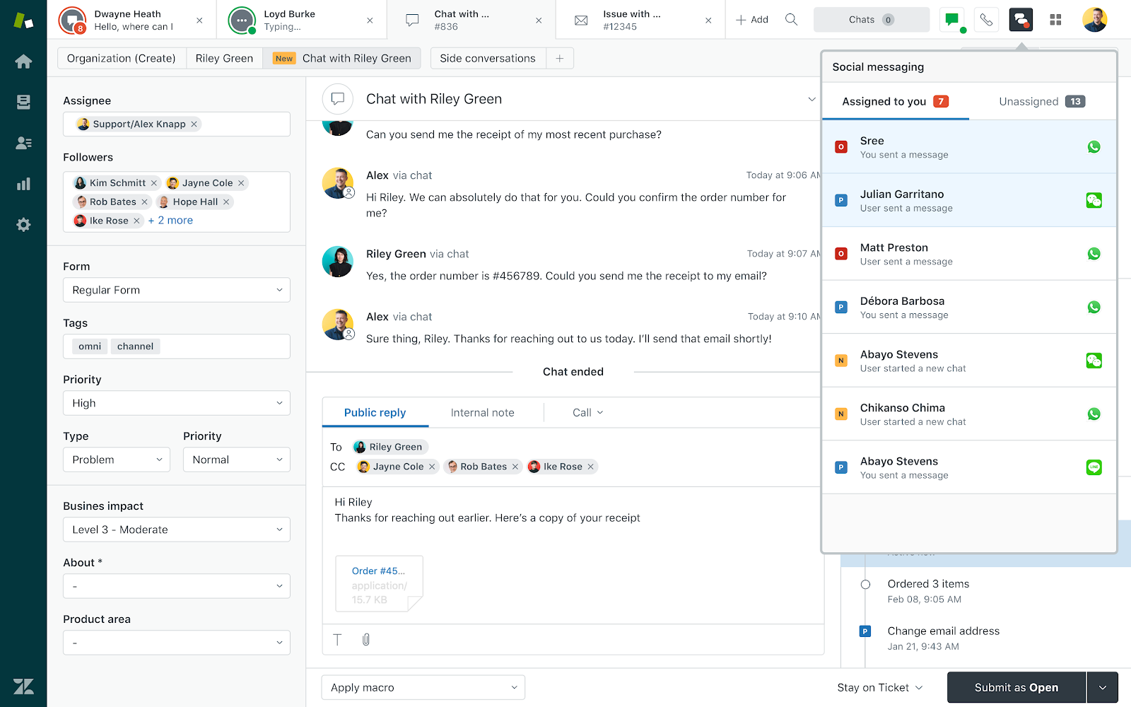 Bring in customer interactions from anywhere. With features like web widgets, pre-defined ticket responses, and customer search history, give them faster support on their preferred channels at the moment they need it.